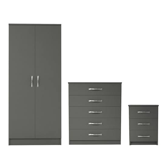 3 Piece Bedroom Furniture Set in Grey – Ready to Use Wardrobe, Chest Drawer & Bedside Cabinet