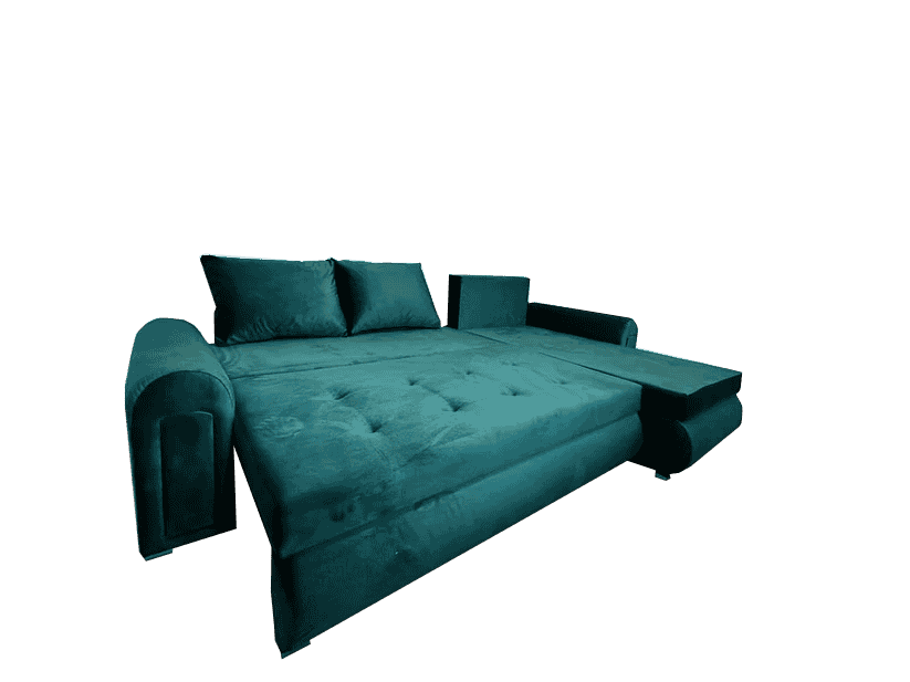 Berlin Corner Sofa Bed – 3 Seater Green Velvet with Storage