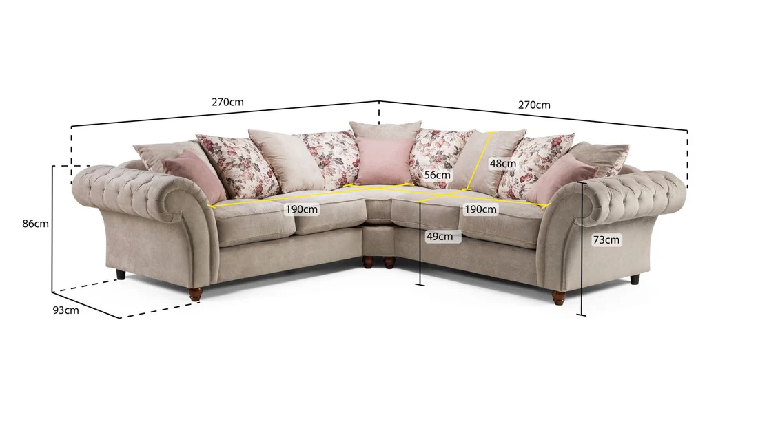 Whether placed in a modern open plan living area or a cosy family room, this beige Chesterfield corner sofa delivers refined comfort with effortless sophistication
